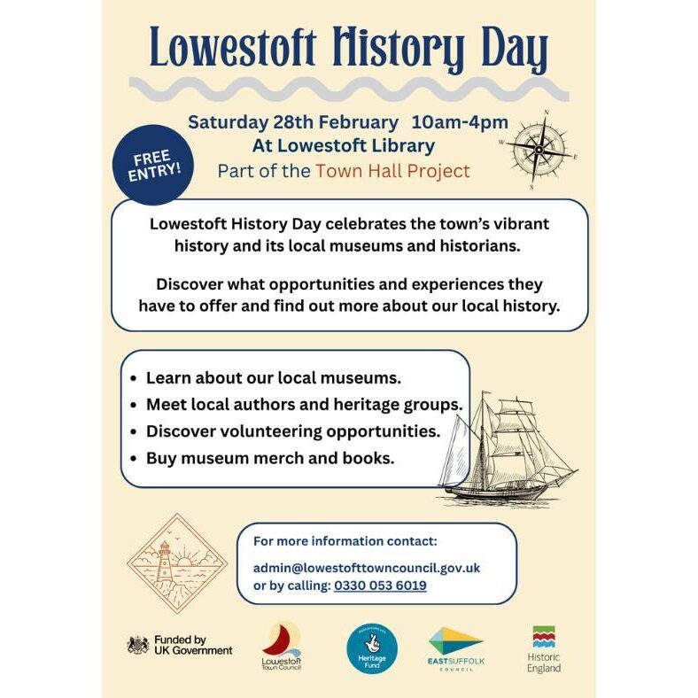Join us for ‘Lowestoft History Day,’ at Lowestoft Library. 🧭