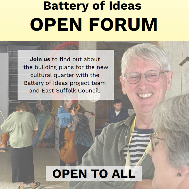 This open forum is a chance to come together for conversation and networking, as well as hear updates on the Battery of Ideas project from our team and learn more about the Battery Green development from East Suffolk Council.