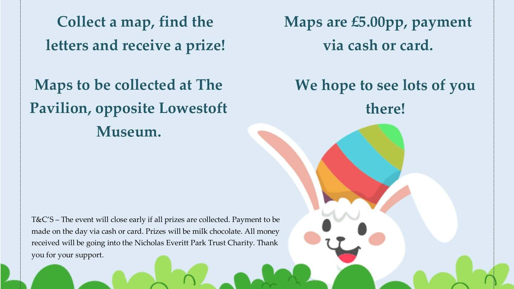 Remember, the hunt ends once all prizes are claimed or at the end time whichever comes first, so early arrival is key. Prizes will be milk chocolate. All funds raised during this fun-filled event will be dedicated to supporting the Nicholas Everitt Park Trust Charity, making your participation even more meaningful.