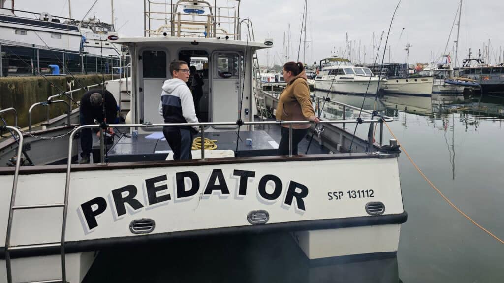 The boat Predator is the best out there. As a fisherman as well, I know the little things us anglers like to see onboard a charter fishing vessel. From the latest safety gear, fish finders, radar, AIS, onboard 240v electric for faster kettles to boil and on deck toilet with a hot and cold water sink to keep those hands clean after you been dealing with bait and fish. Also, while we are travelling, anglers can sit inside our wheelhouse which is heated for those colder days and nice and dry in the rain.